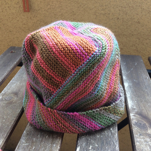 Also haben wir ein paar Knäuelchen mitgenommen und ich habe ein Winterset daraus getrickt. Mütze *Langfield* (sogar doppelt, denn die erste war vieeeeel zu groß, die Wolle dehnt sich mehr, als vermutet),